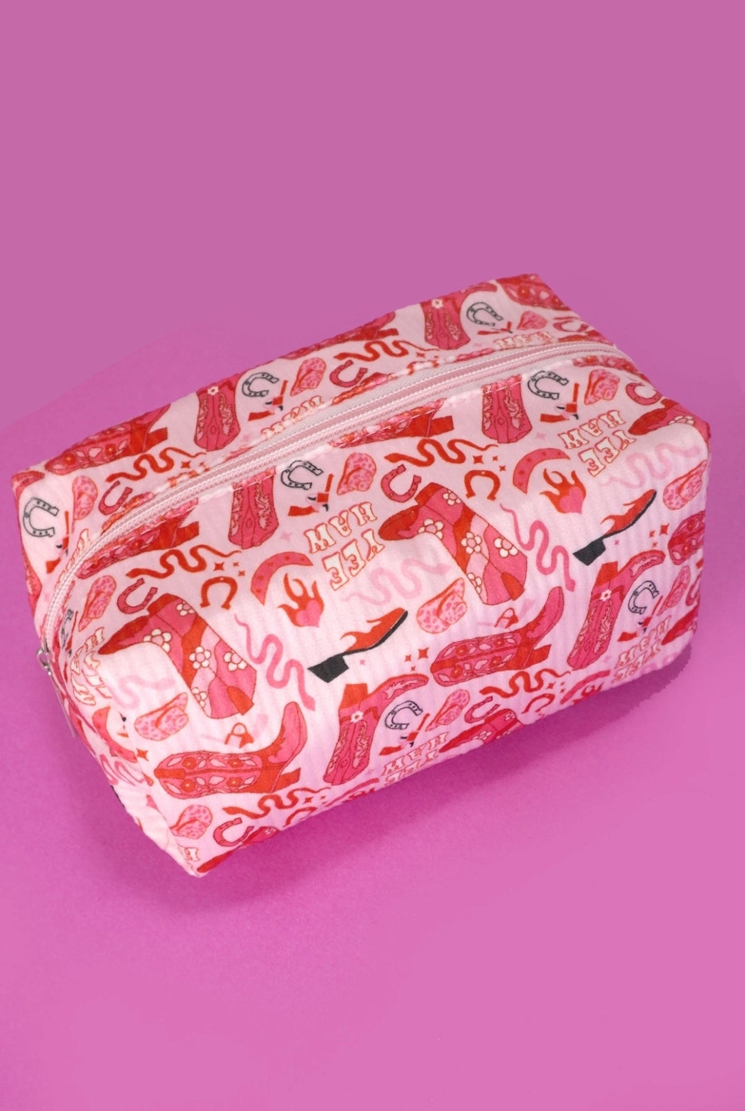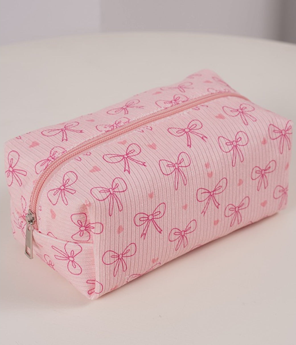 Quilted Cotton Bow Cosmetic Pouch Bag