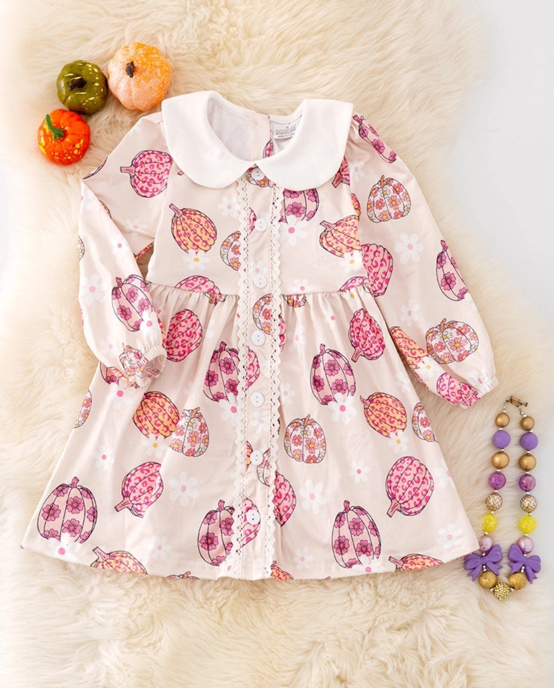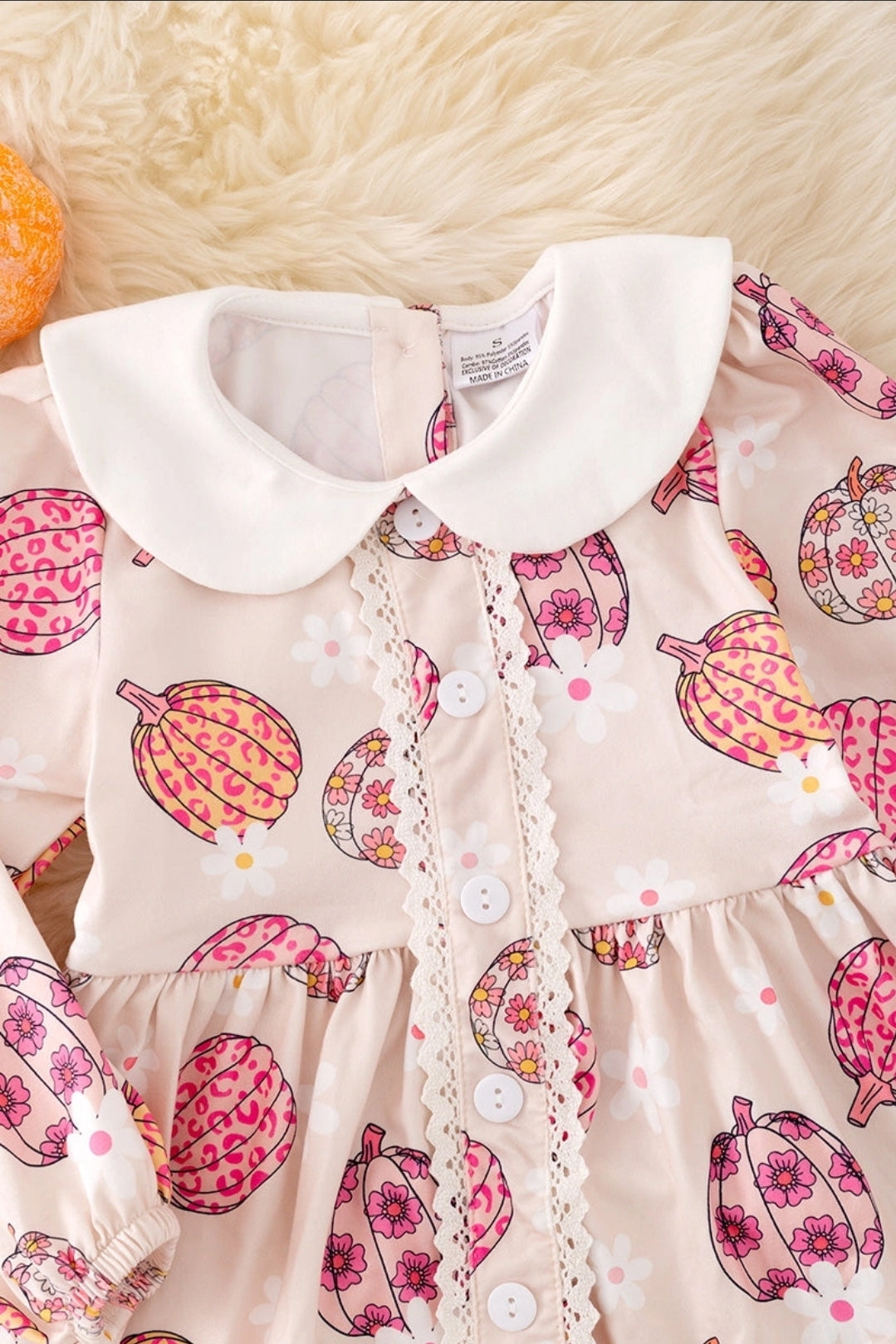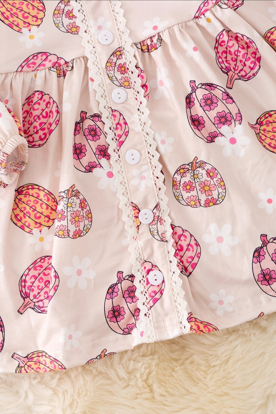 Pumpkin Printed Dress w/ Bubble Sleeve
