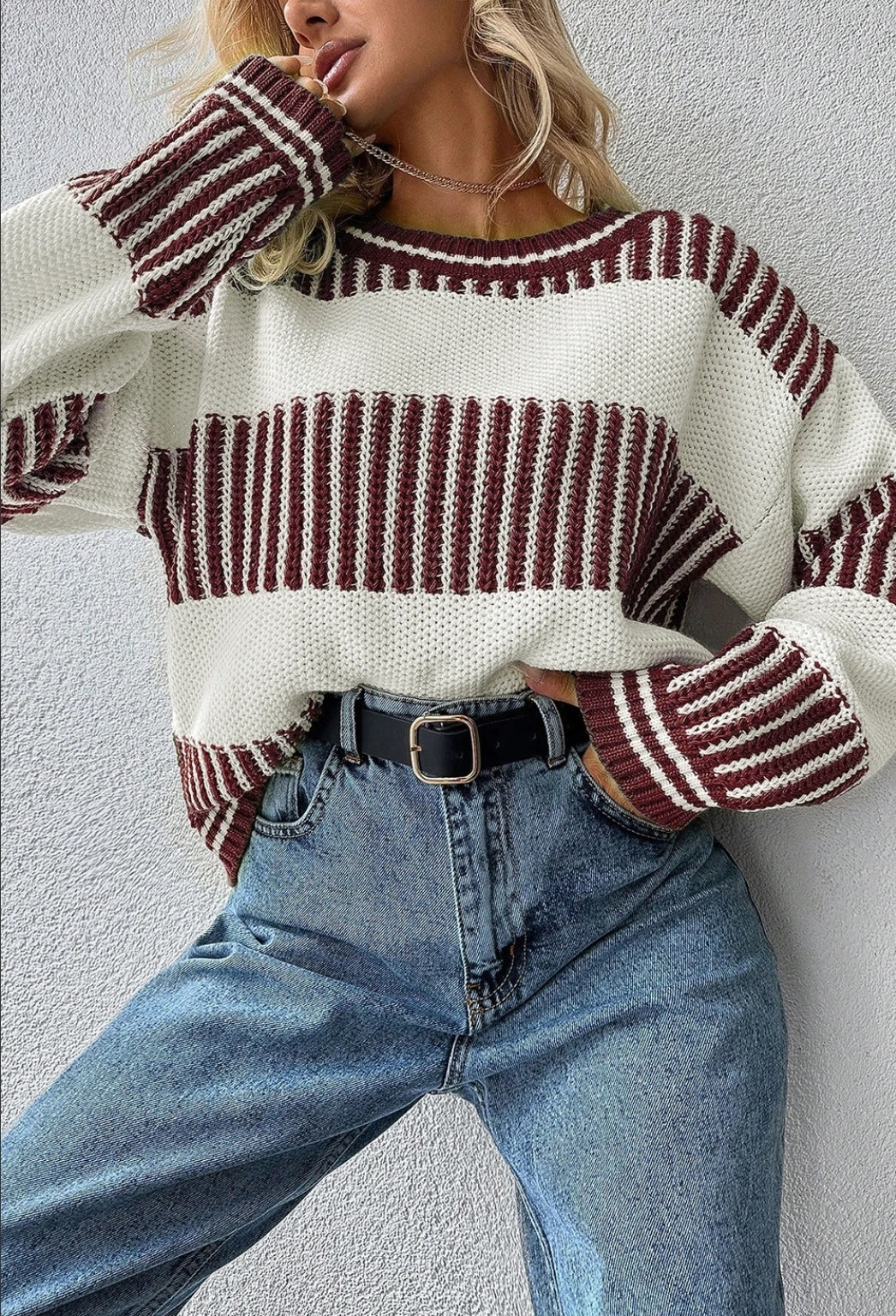 Striped Patchwork Drop Shoulder Loose Sweater